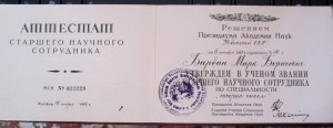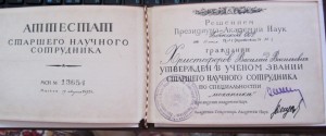 Аттестаты старших научных сотрудников (звание упразднено)